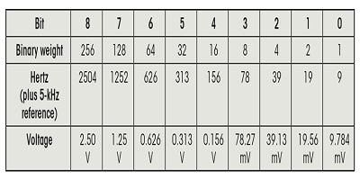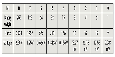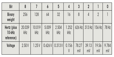4.該表顯示了刻度3的頻率到電壓的轉(zhuǎn)換。