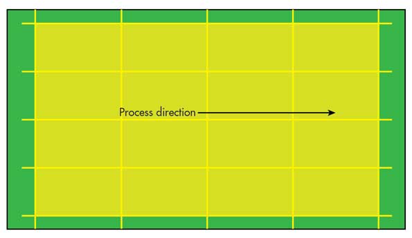 設計面板尺寸時要考慮的另一項是將輸送機寬度的變化保持在最小。在我所生活的低數(shù)量,高混合的世界中,這一點尤其重要。如果您要沿一條線運行數(shù)百萬個相同的板,那么這不是大問題。在限制輸送機寬度變化的一個示例中,開發(fā)了以下陣列寬度以使用24英寸輸入。1英寸地制作出的面板尺寸。周邊處理間隙: