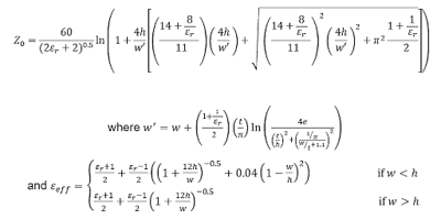 IPC 2142公式僅在特定的阻抗范圍內非常精確。您應該使用更準確的Hartley方程來確定微帶走線的阻抗: